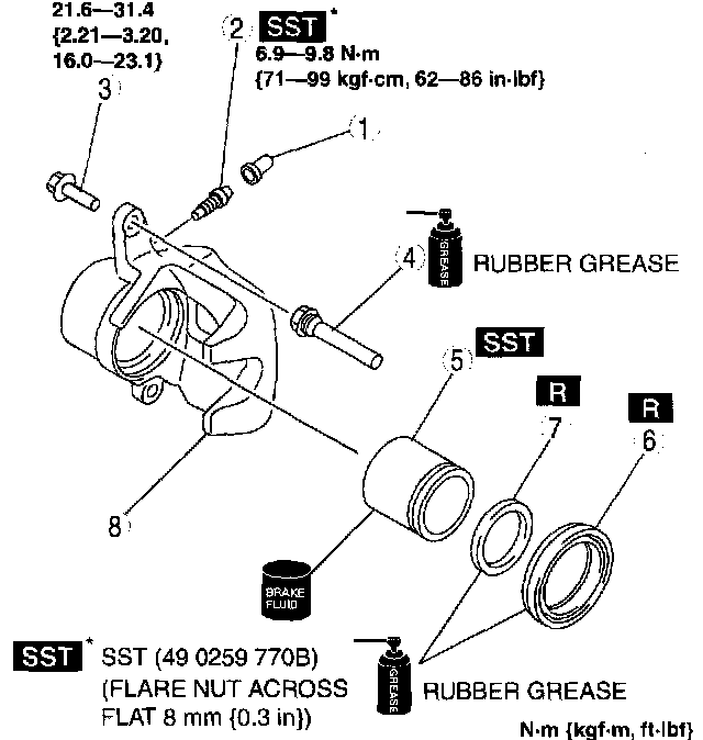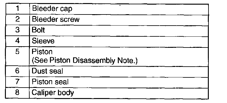 CALIPER (FRONT) DISASSEMBLY/ASSEMBLY1. Disassemble in the order indicated in the table.