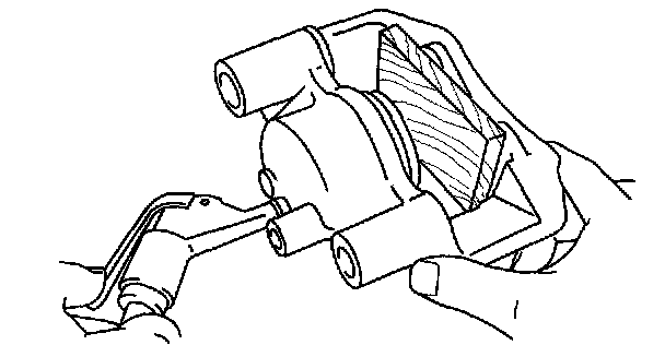 1. Insert a piece of wood in the caliper as shown in the figure, and then blow compressed air through the bleeder screw hole to remove the piston from the caliper body.