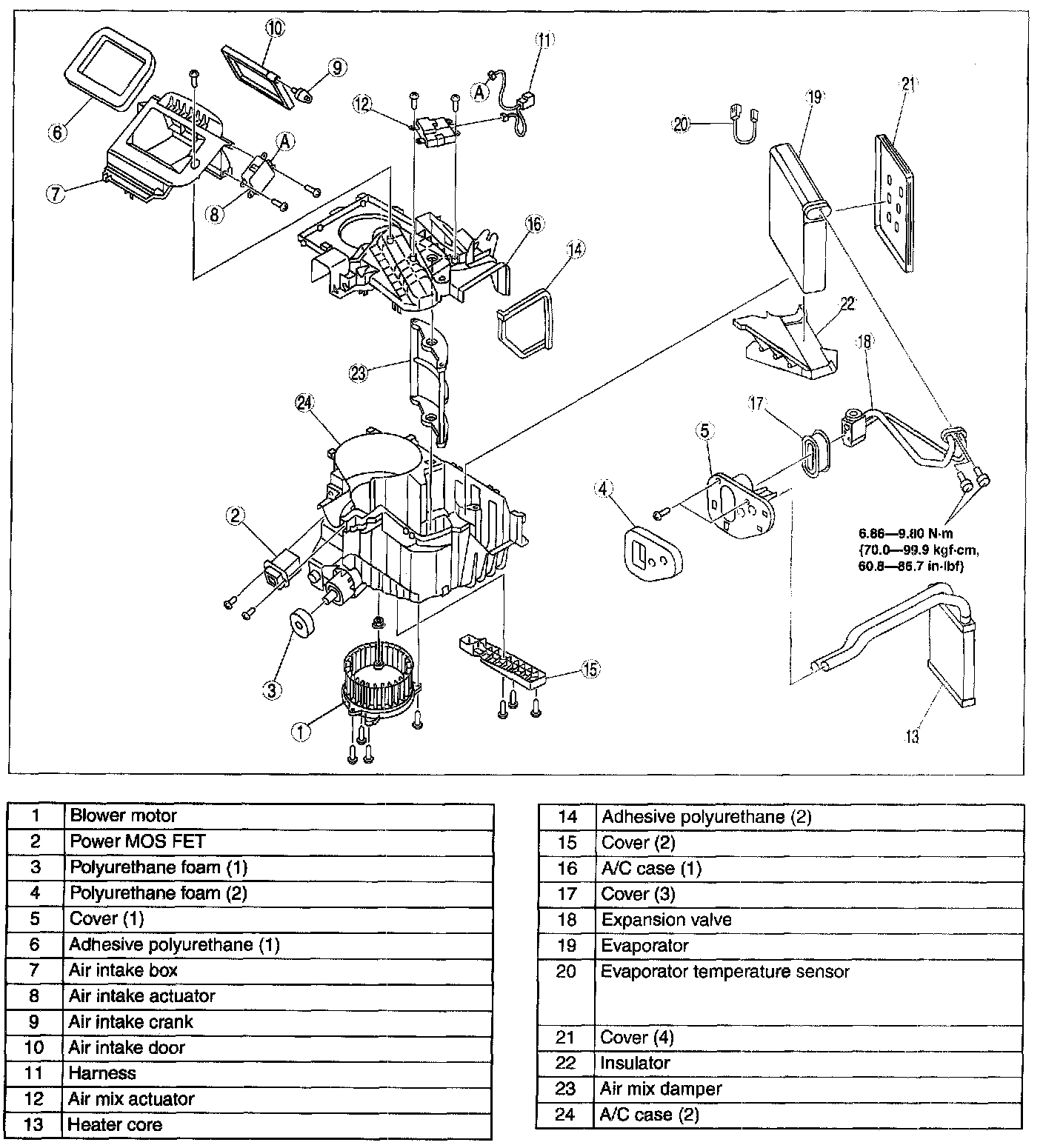 A/C UNIT DISASSEMBLY/ASSEMBLY1. Disassemble in the order indicated in the table.
