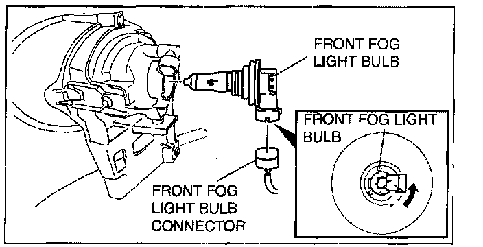 5. Disconnect the front fog light bulb connector and remove the front fog light bulb by turning it in the direction of the arrow.