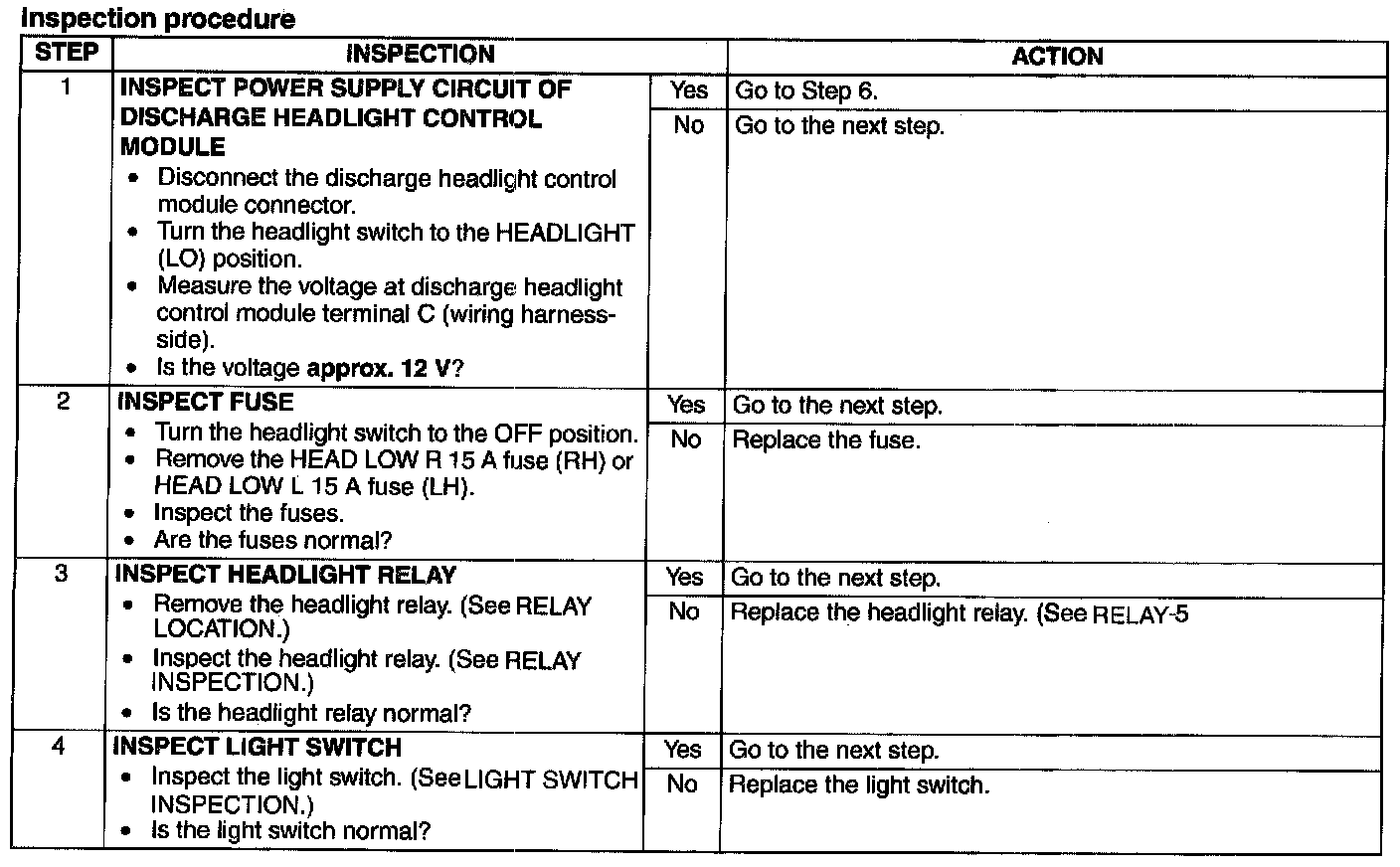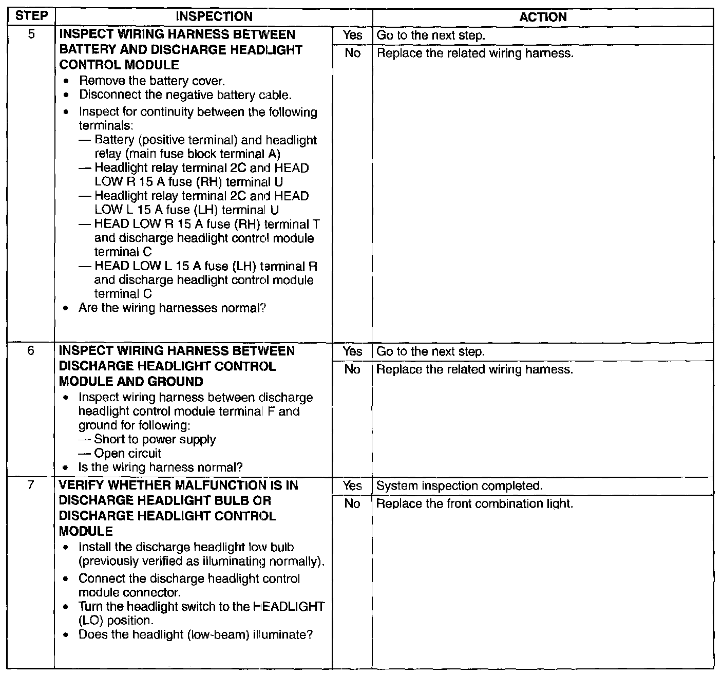 DISCHARGE HEADLIGHT SYSTEM INSPECTIONTerminal Layout: