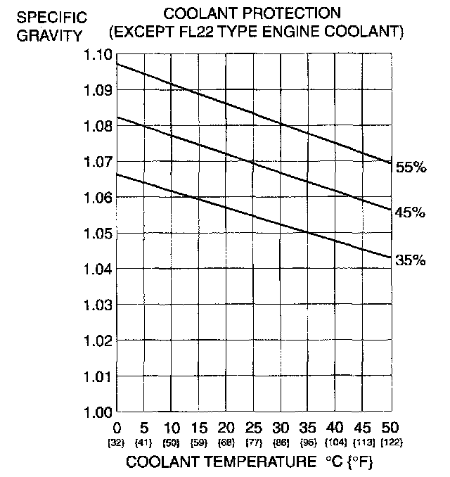 ^ FL22 type engine coolant is shipped as a diluted solution (55% coolant, 45% water). Use the solution as is when replacing coolant.