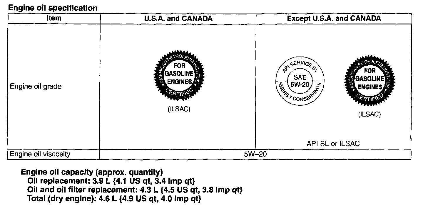 Note: The amount of residual oil in the engine can vary according to factors such as the replacement method and oil temperature. Verify the oil level after engine oil replacement.