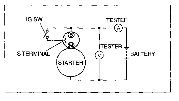 2. Connect the starter, battery, and a tester as shown in the figure.