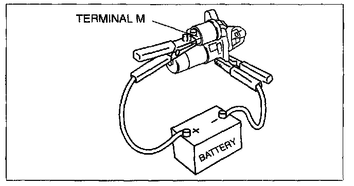 2. Connect battery positive voltage to terminal M and ground the starter body.