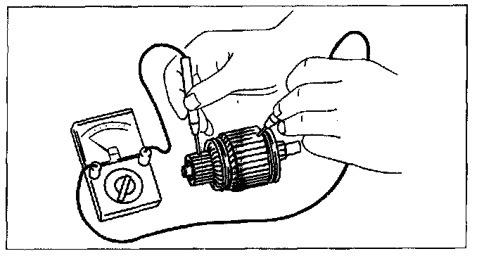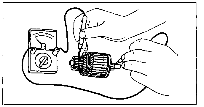 2. Verify that there is no continuity between the commutator and the shaft using a tester.