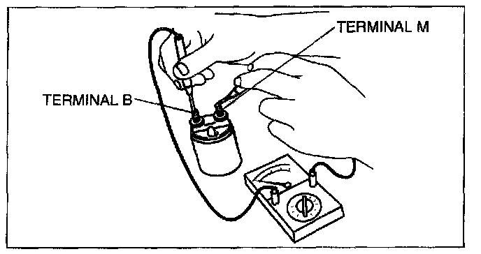3. Verify that there is no continuity between terminals M and B using a tester.