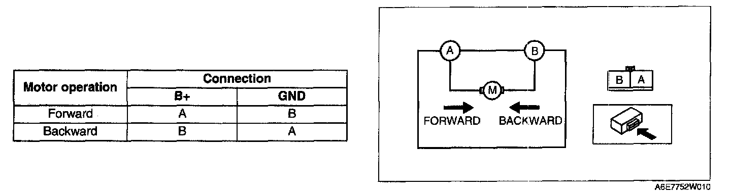 2. Apply battery positive voltage to the slide motor terminals and inspect the slide motor operation