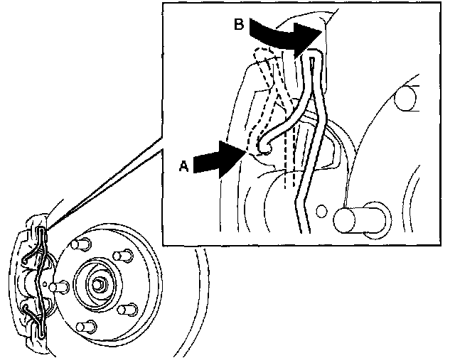 2. Secure the retaining clip so that part A does not slip off from the caliper while installing part B to the mounting support.