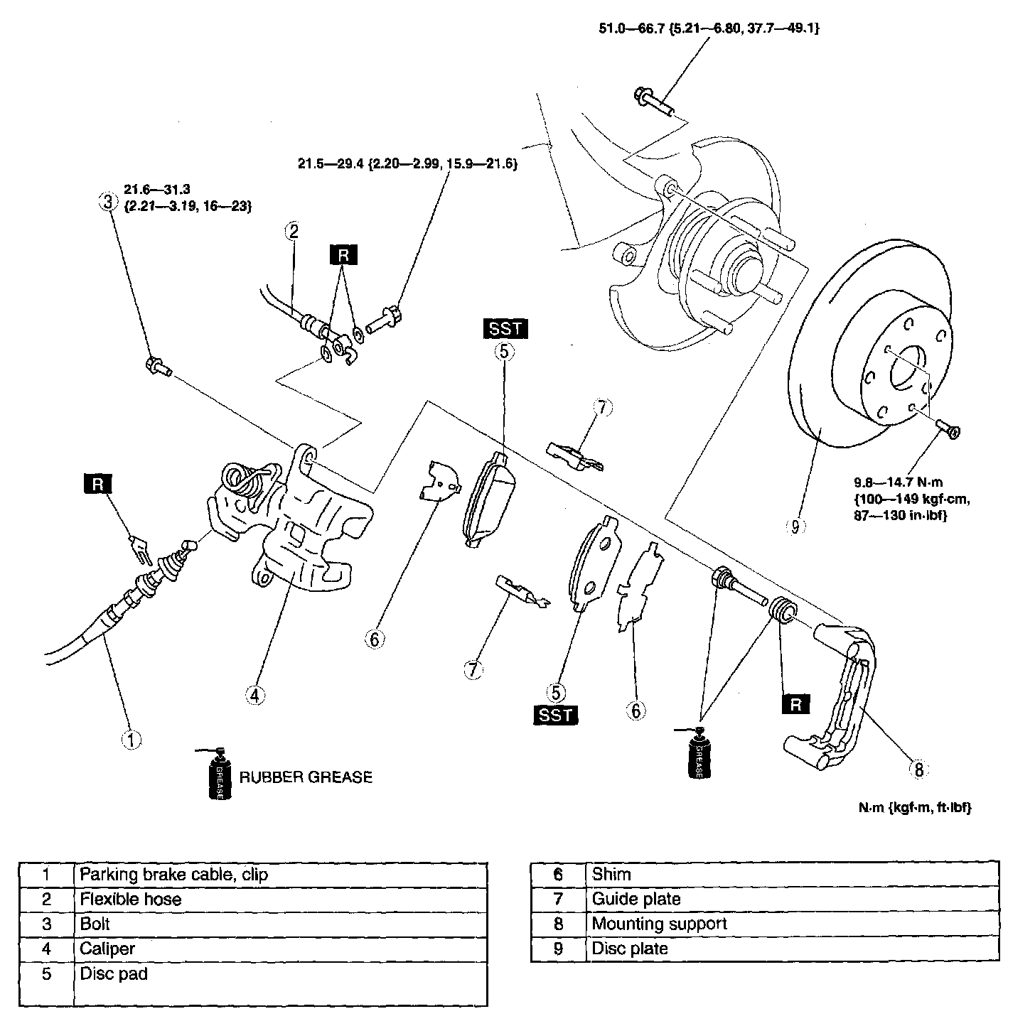 REAR BRAKE (DISC) REMOVAL/INSTALLATION1. Remove in the order indicated in the table.