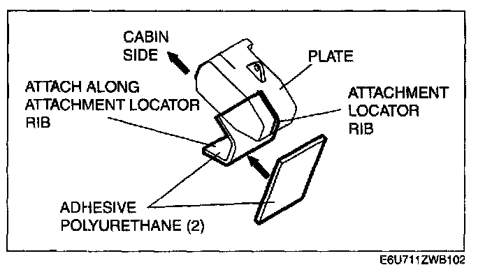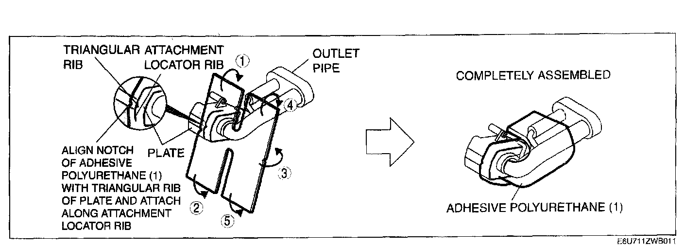 1. Attach the adhesive polyurethane (2) as shown in the above figure.