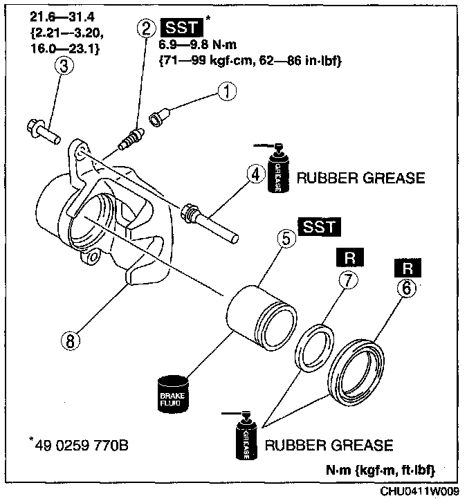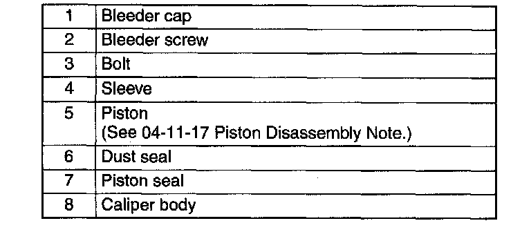 CALIPER (FRONT) DISASSEMBLY/ASSEMBLY1. Disassemble in the order indicated in the table.