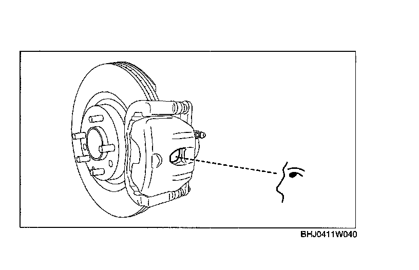 Disc Pad Thickness Inspection1. Jack up the front of the vehicle and support it with safety stands.