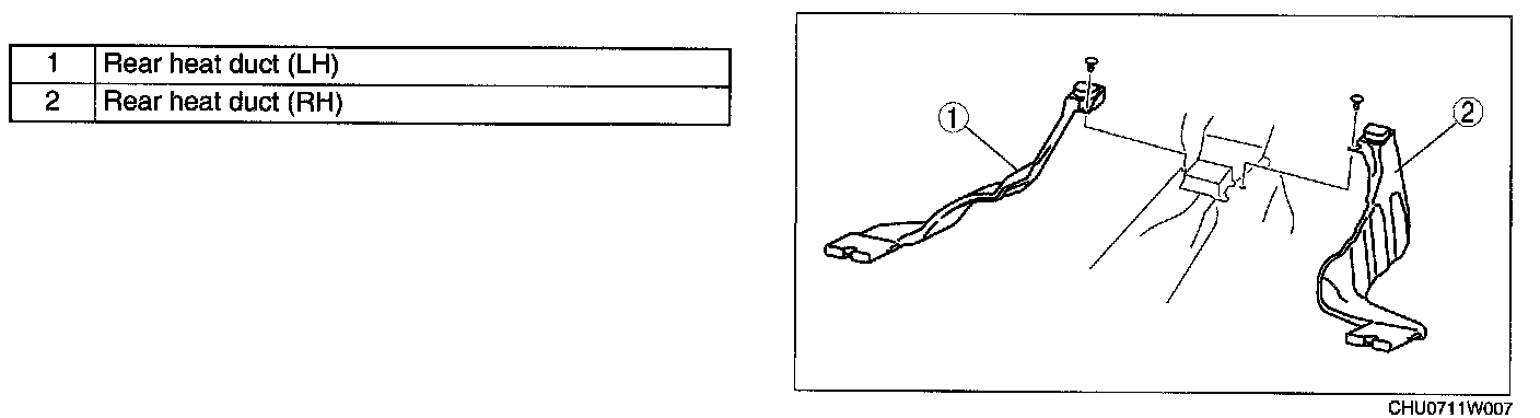 REAR HEAT DUCT REMOVAL/INSTALLATION1. Remove the following parts:
