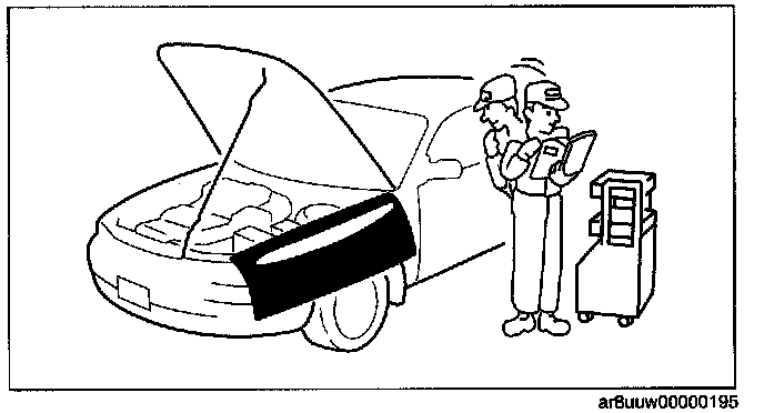 NOTE: Referring to the fluorescent dye instruction manual, mix the specified amount of dye into the engine oil or ATF (or transaxle/transmission oil).