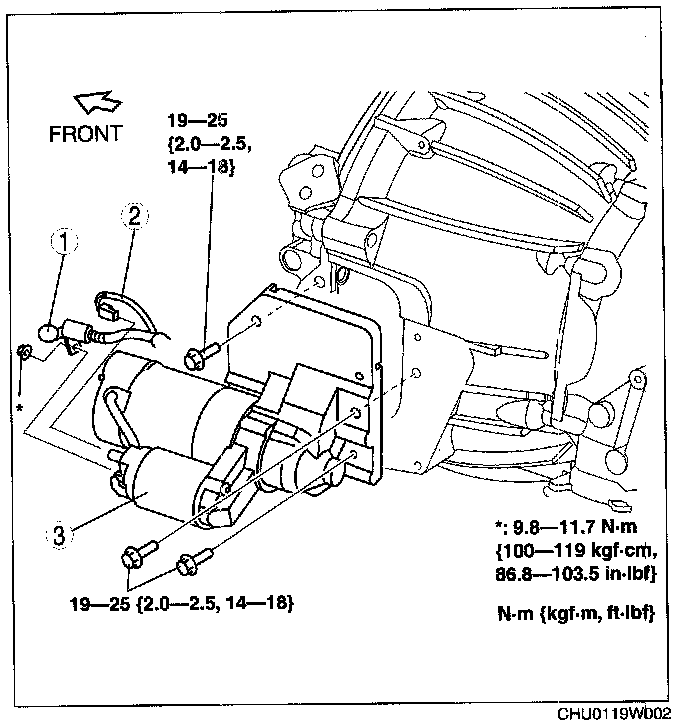 - When the battery cables are connected, touching the vehicle body with starter terminal B will generate sparks. This can cause personal injury, fire, and damage to the electrical components. Always disconnect the negative battery cable before performing the following operation.