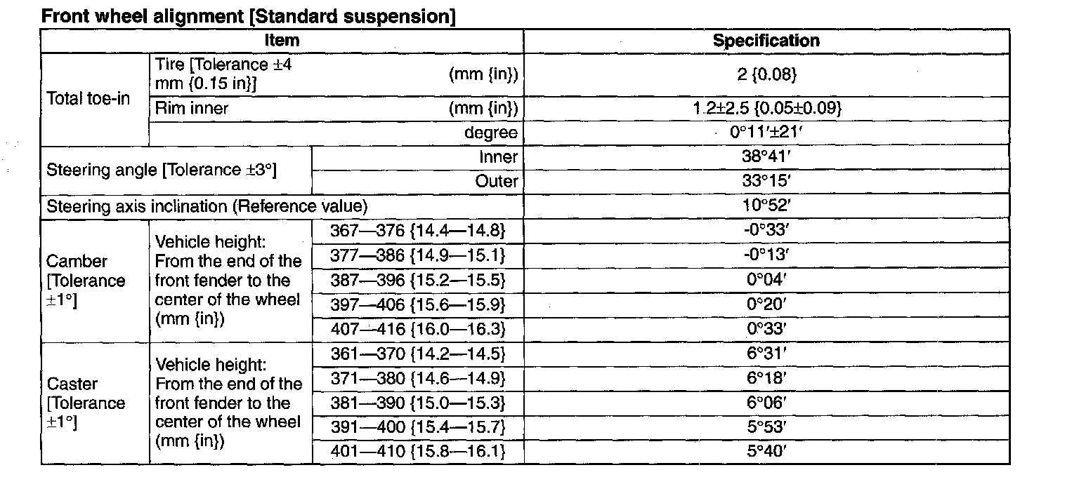 Front Wheel Alignment [Standard Suspension]: