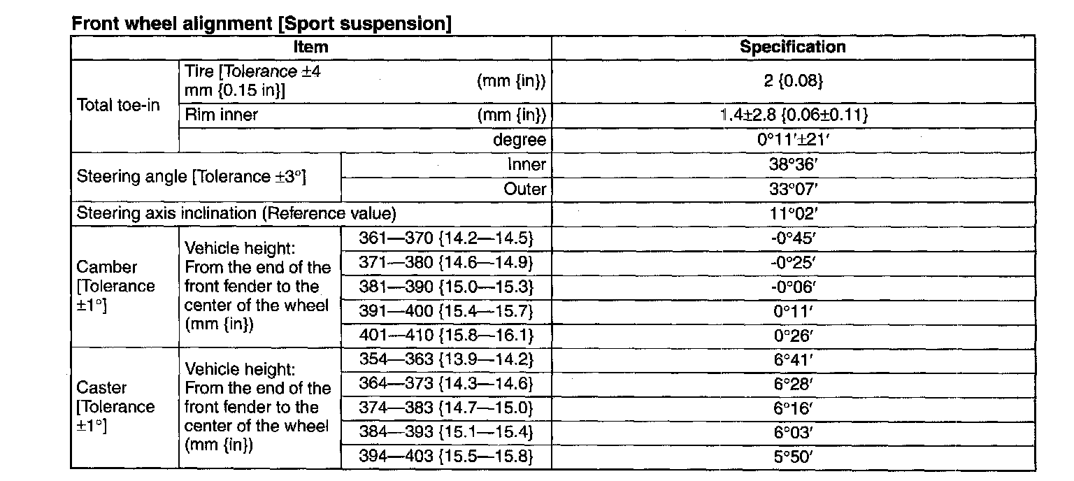 Front Wheel Alignment [Sport Suspension]: