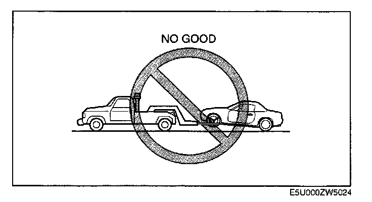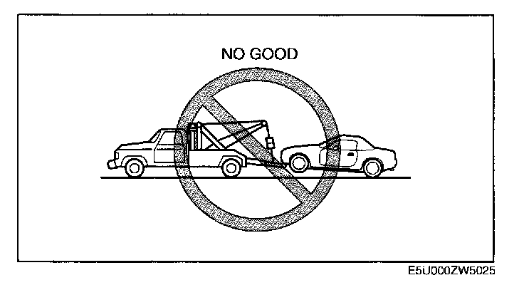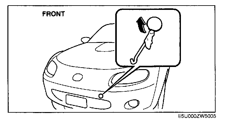 CAUTION: Do not use the tiedown hooks under the front and rear for towing. They are designed ONLY for tying down the vehicle when it's being transported. Using them for towing will damage the bumper.