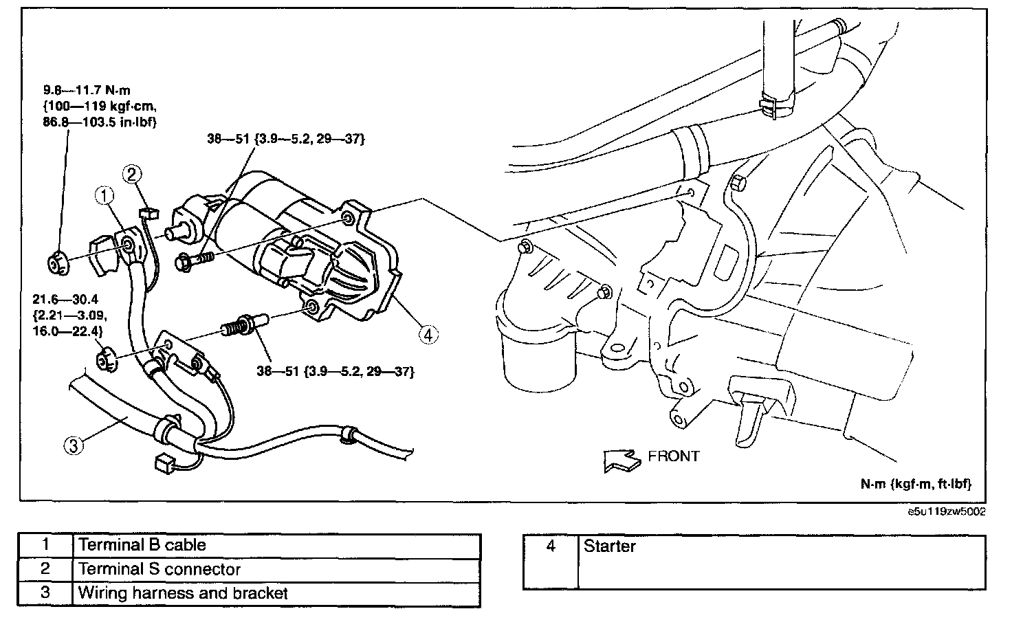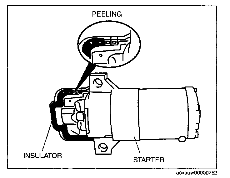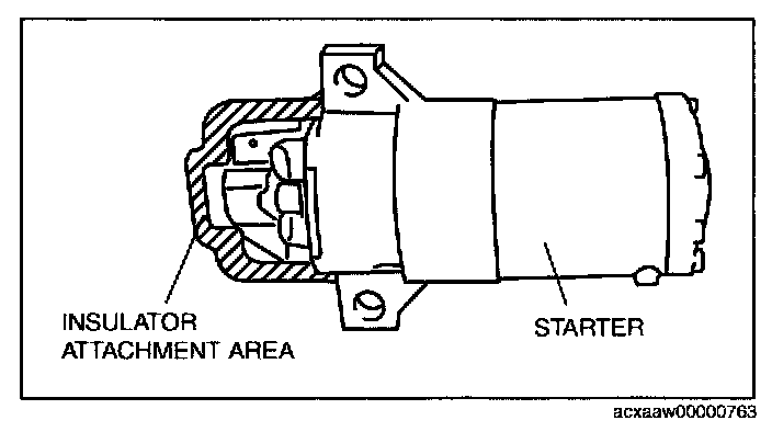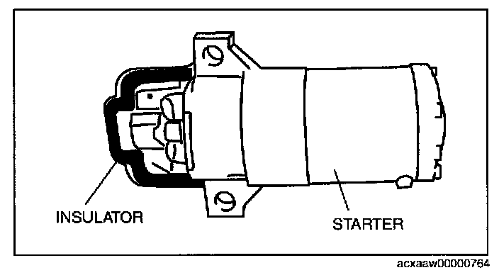 - When the battery cables are connected, touching the vehicle body with starter terminal B will generate sparks. This can cause personal injury, fire, and damage to the electrical components. Always disconnect the negative battery cable before performing the following operation.