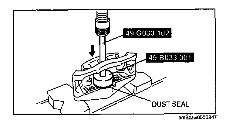 1. Assemble a new dust seal to the caliper using the SSTs and a press with a press-in force of 834 N (85 kgf, 187 in-lbf).