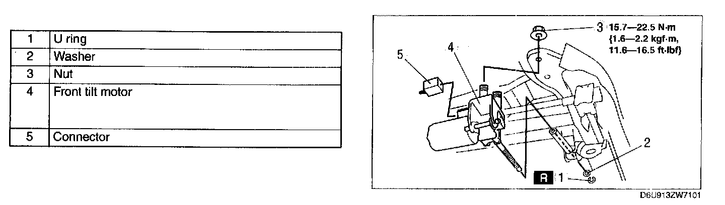CAUTION: This procedure should be performed when the front tilt motor is replaced with a new one. A front tilt motor removed using this procedure should not be reinstalled to the vehicle as it may cause abnormal operation or noise.