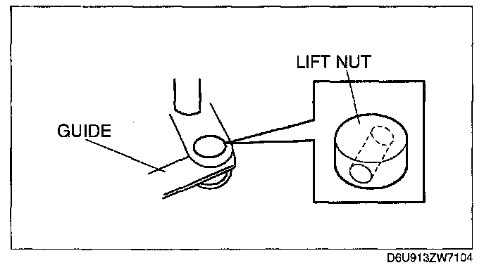 2. Operate the power seat switch in the tilt-up direction so that the front tilt motor rotates and the shaft comes out from the guide.