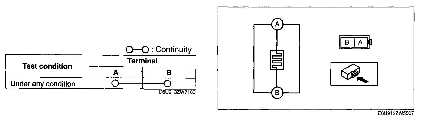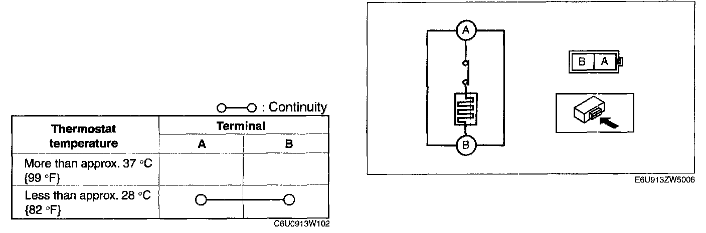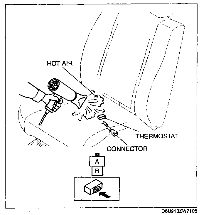 3. While inspecting for continuity between connector terminals A and B, use a dryer the thermostat of the seat warmer unit cushion.