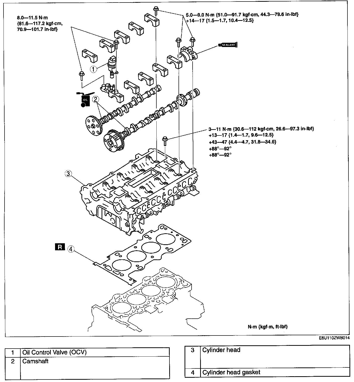 (2) 13 - 17 Nm (1.4 - 1.7 kgf.m, 9.6 - 12.5 ft. lbf)