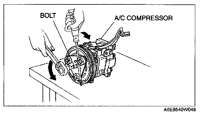 2. When installing a new A/C compressor body, replace the bolt.