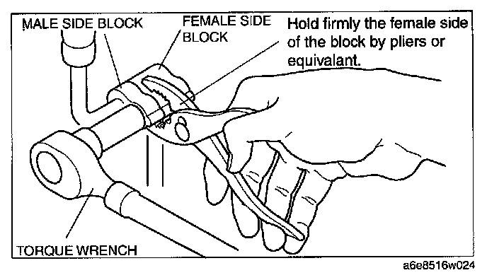 3. Connect the block joint type pipes by grasping the female side of the block with pliers or similar tool and holding firmly, then tighten the connection bolt or nut with a torque wrench.