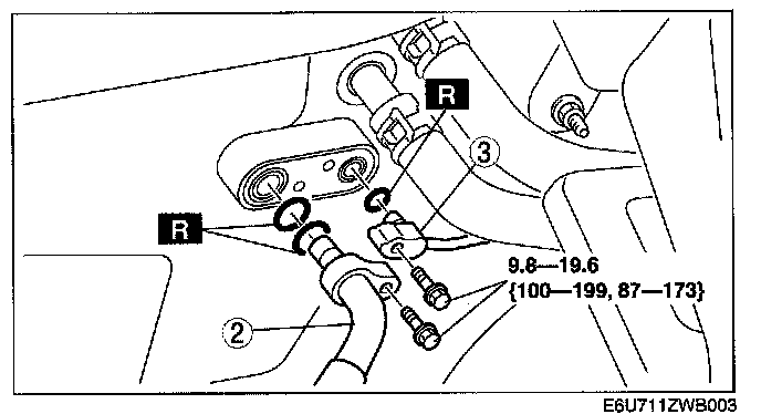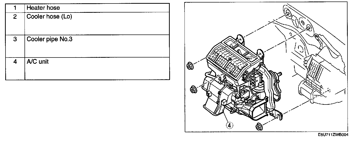 6. Remove in the order indicated in the table. Do not allow compressor oil to spill.