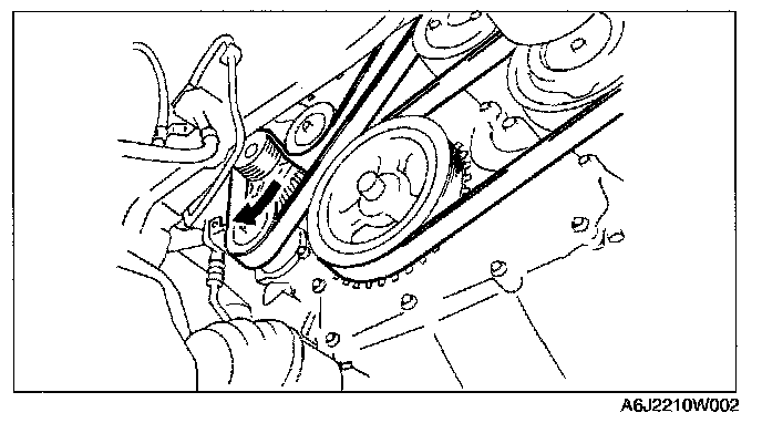 2. Rotate the drive belt auto tensioner in the direction shown in the figure and remove the drive belt.