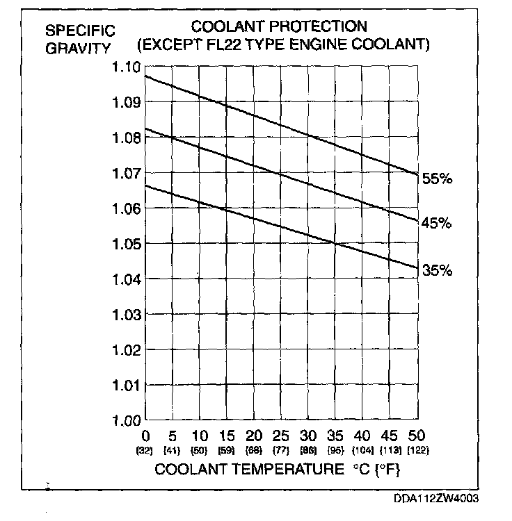 ^ FL22 type engine coolant is shipped as a diluted solution (55% coolant, 45% water). Use the solution as is when replacing coolant.