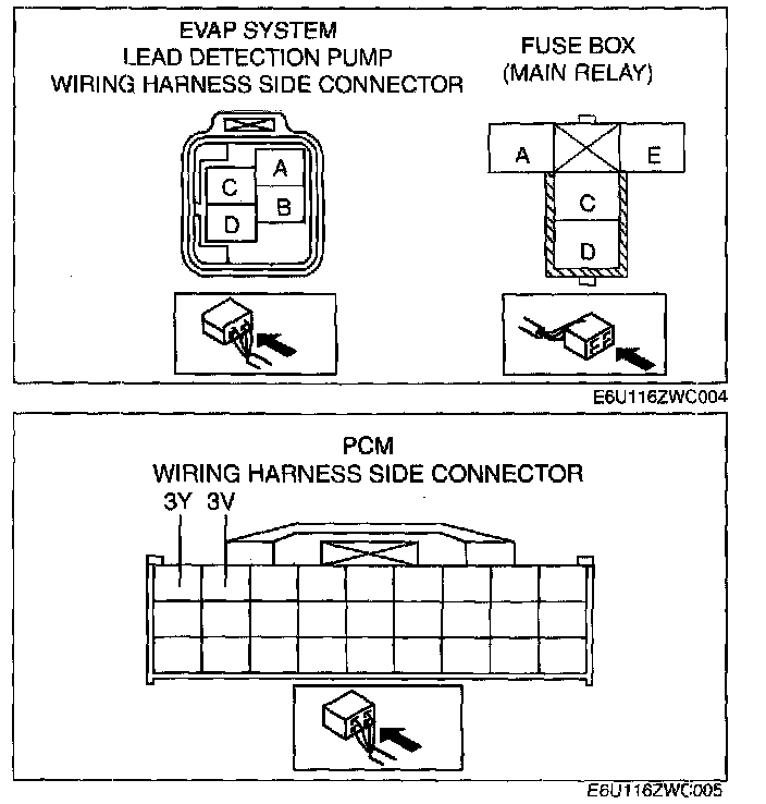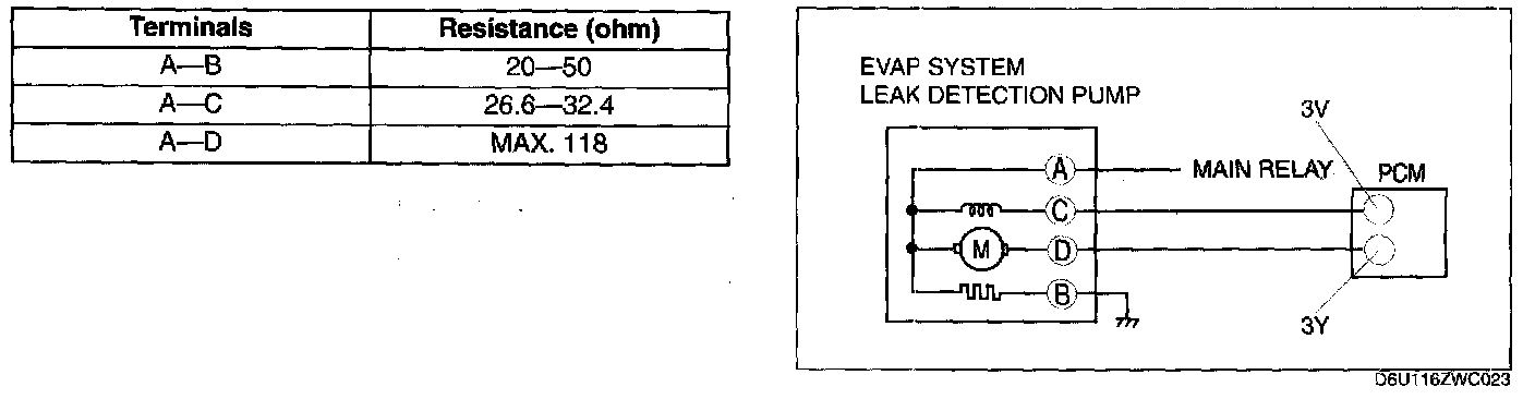 - EVAP system leak detection pump terminal D and PCM terminal 3Y