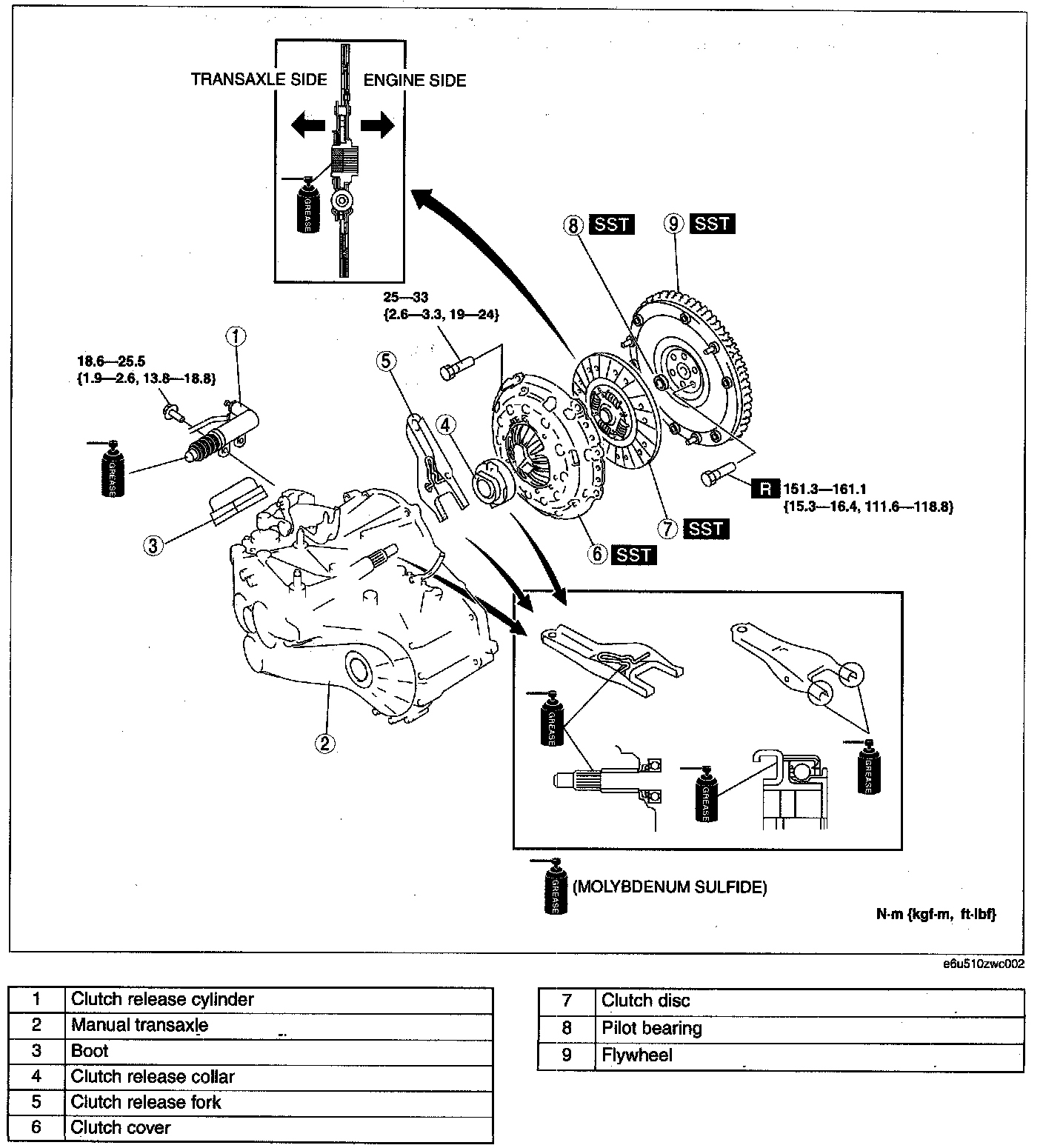 ^ Due to the automatic adjustment function of clutch cover, if the old cover assembly is reused, it must be reinstalled together with its original clutch disc.