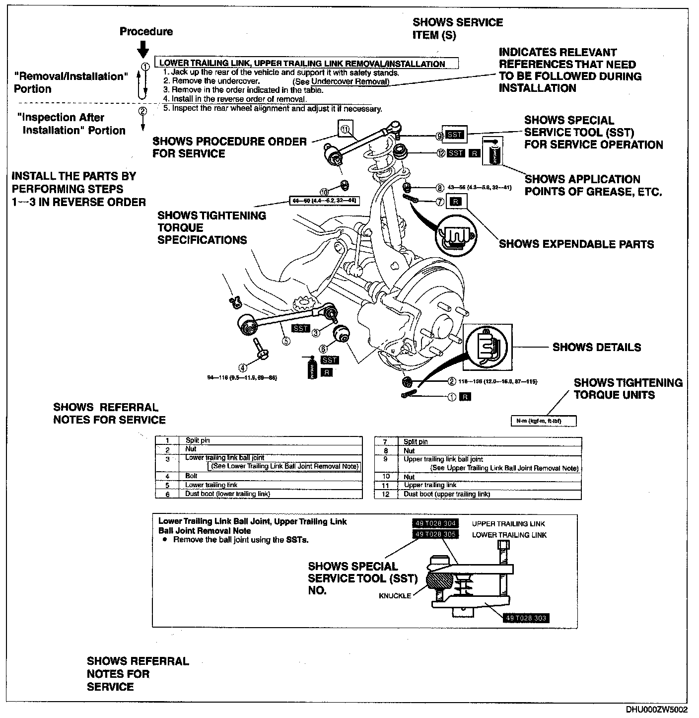 - Symptom troubleshooting shows diagnostic procedures, inspection methods, and proper action to take for each trouble symptom.