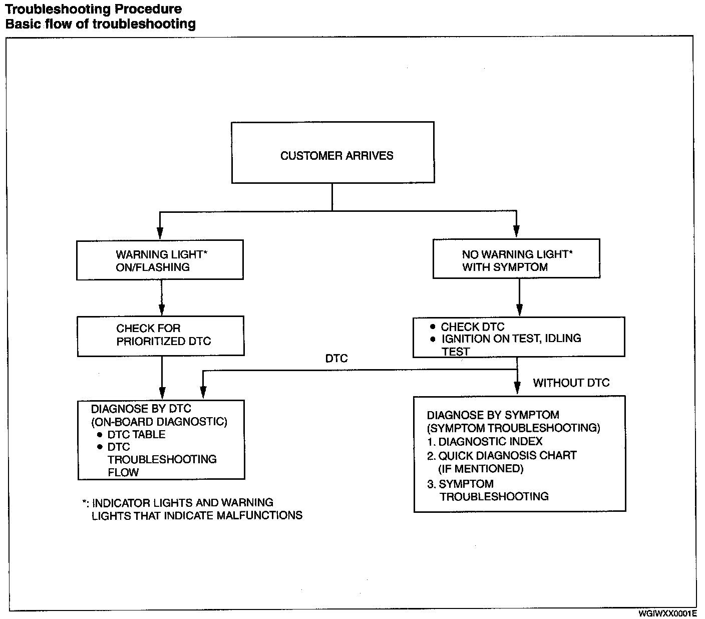 - The appropriate diagnostic inspection relating to malfunction cause as specified by the symptoms can be selected by looking down the diagnostic inspection column of the chart.