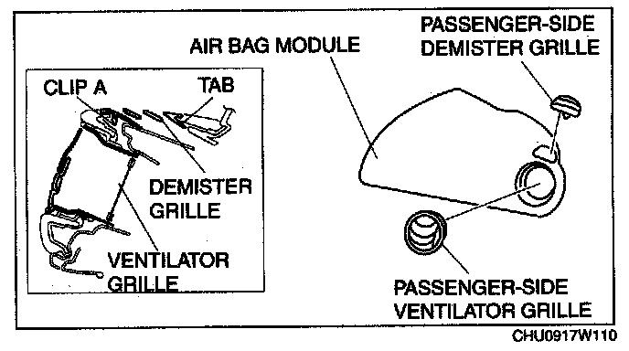 4. Pull the passenger-side demister grille upward and detach clip A.