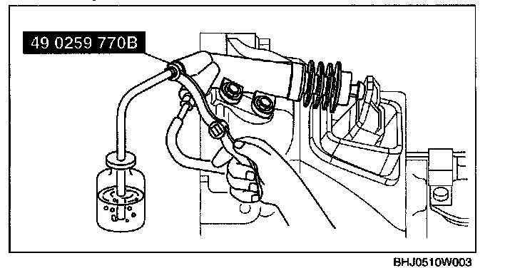 1. Remove the bleeder cap from the clutch release cylinder, and connect a vinyl hose to the bleeder plug.
