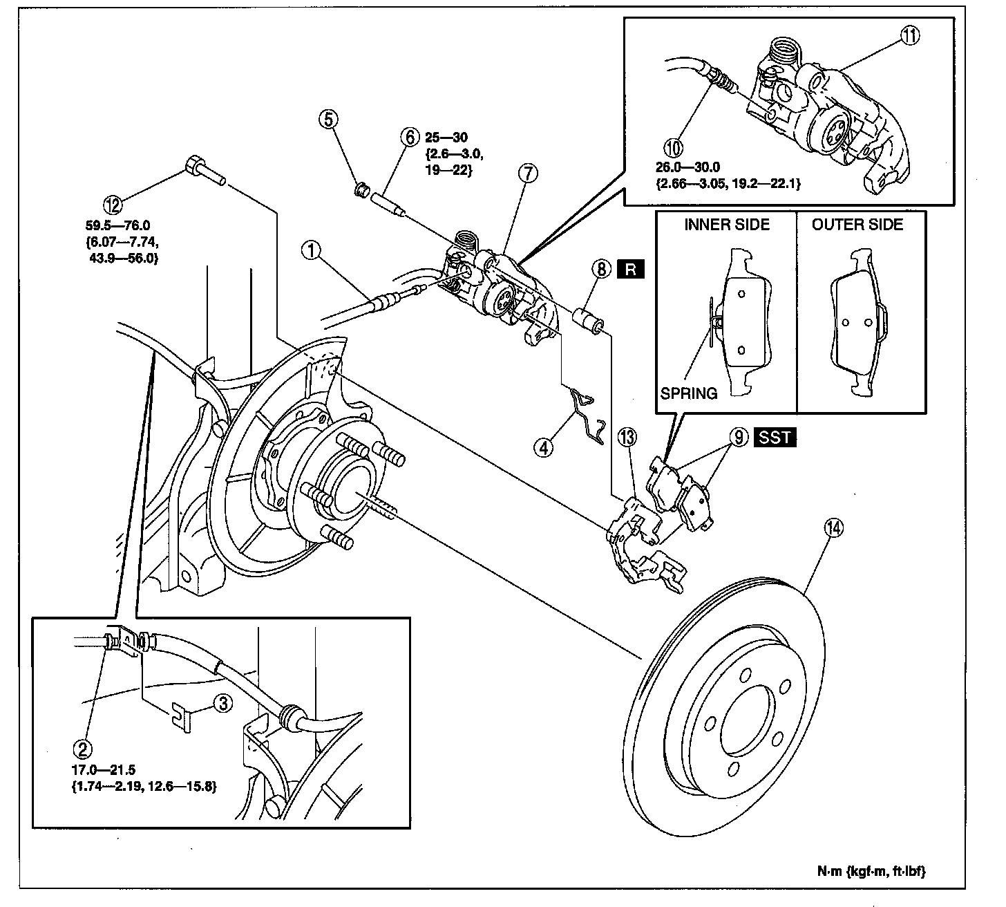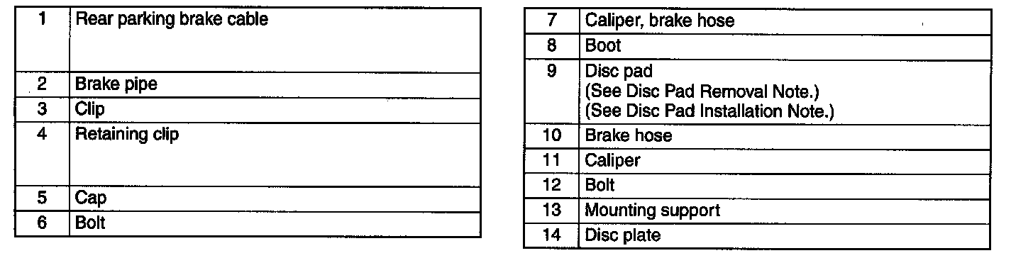 REAR BRAKE (DISC) REMOVAL/INSTALLATION1. Remove in the order indicated in the table.