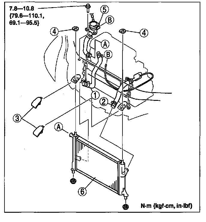 1. Tilt the radiator to the engine side.