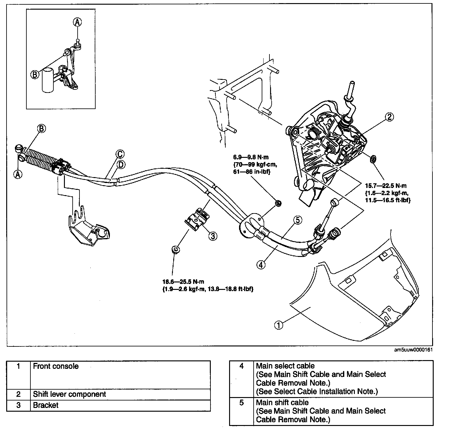 ^ If the shift lever cannot be shifted from neutral to other positions, or if other parts interfere with the shift lever, the selector cable may not be adjusted correctly.
