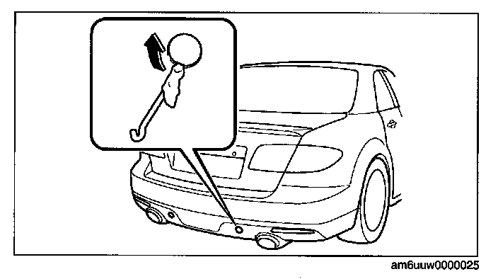 2. Wrap a lug wrench with a soft cloth to prevent damage to the painted bumper and open the cap located on the front and rear bumper.