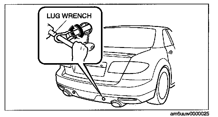 1. Remove the tiedown eyelet and lug wrench from the trunk.