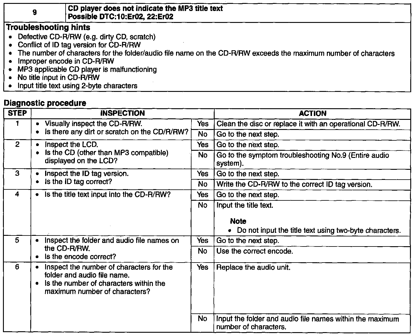 No.9 CD Player Does Not Indicate the MP3 Title Text