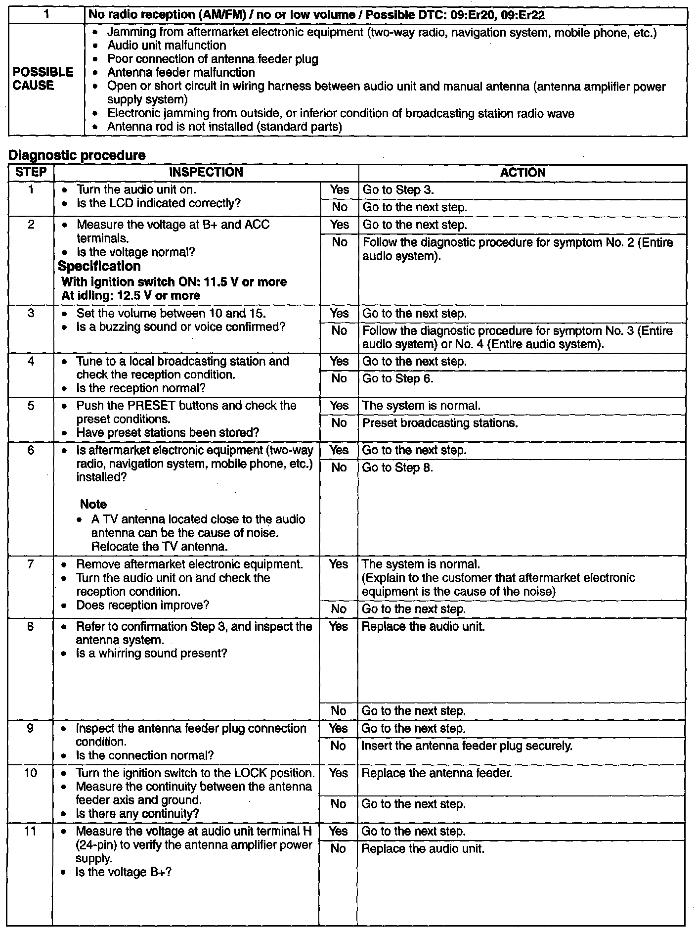 No.1 No Radio Reception (AM/FM)/No Or Low Volume