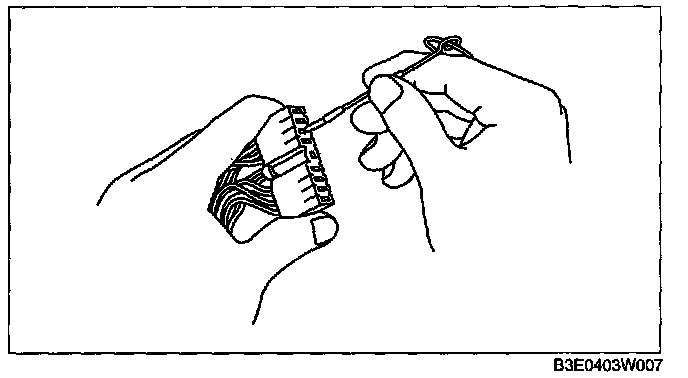 2. Insert the male terminal, and fit the female terminal side to female terminal. Inspect if the malfunction is in the female terminal.