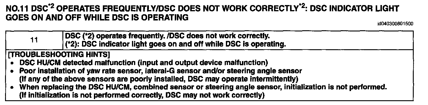 No.11 DSC *2 Operates Frequently/DSC Does Not Work Correctly *2: DSC Indicator Light Goes on and Off While DSC Is Operating