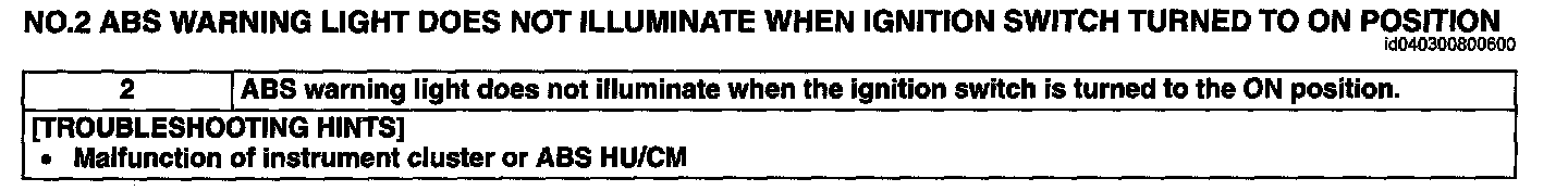 No.2 ABS Warning Light Does Not Illuminate When Ignition Switch Turned to on Position